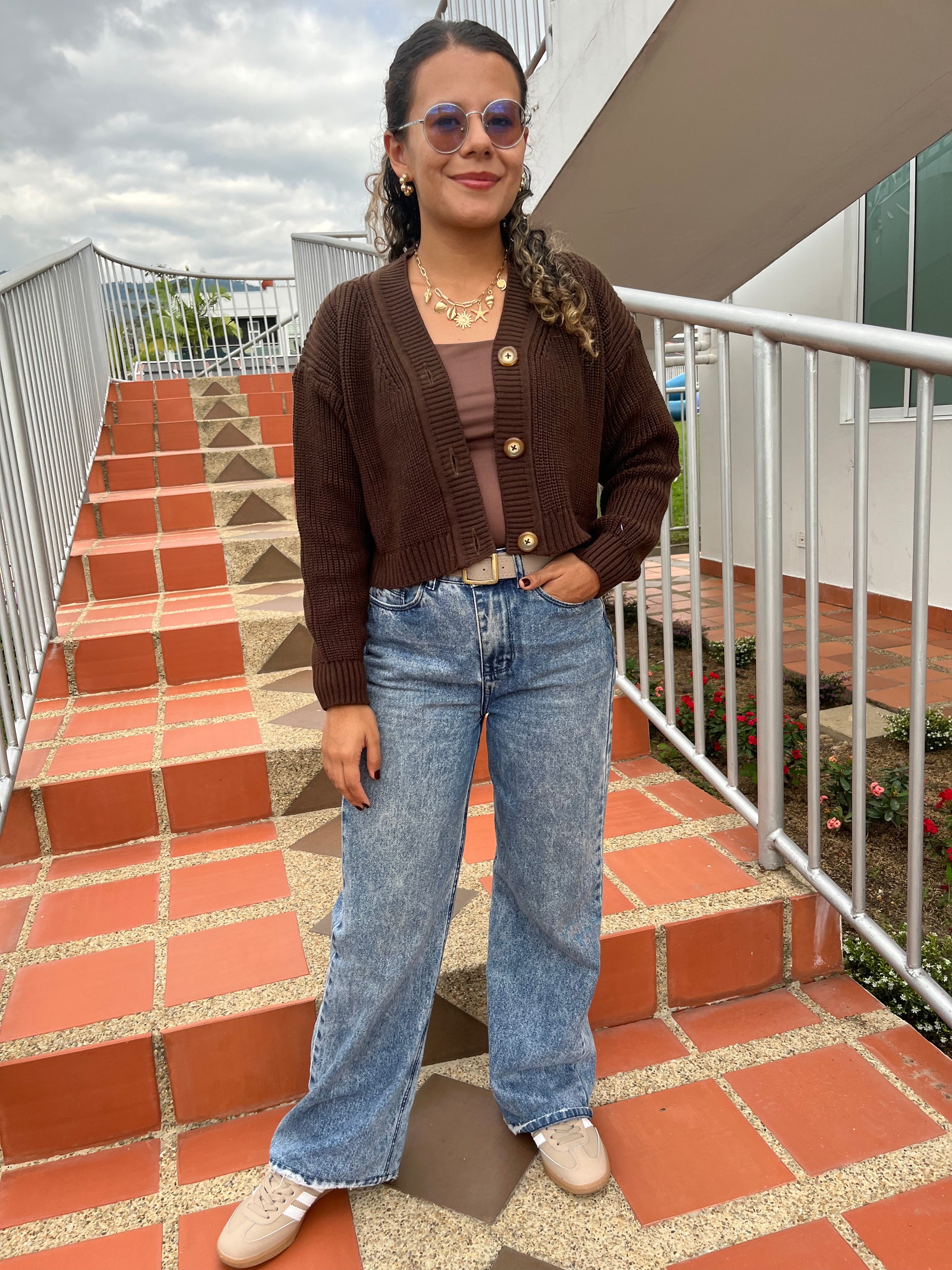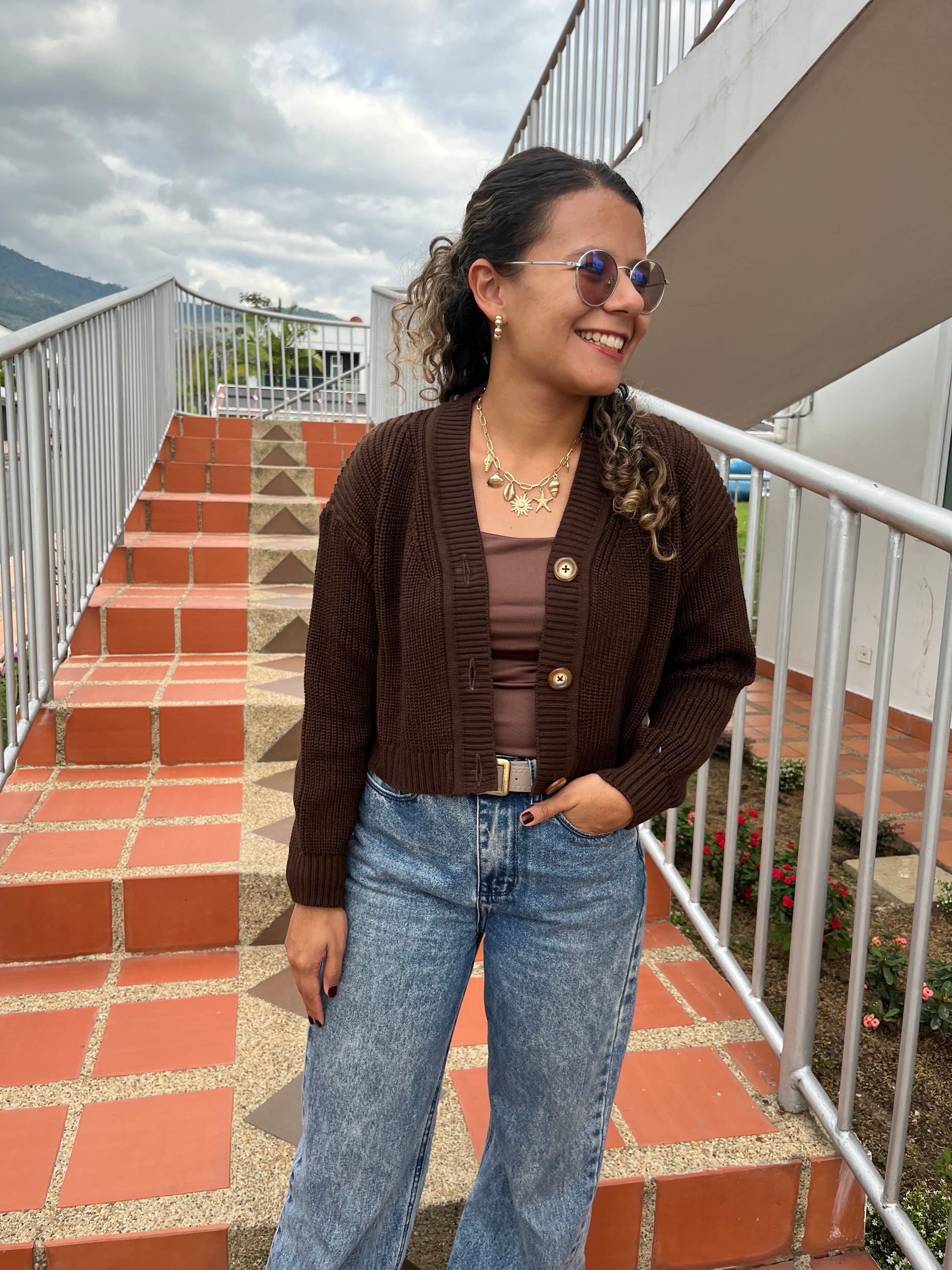 Su tono tierra transmite calidez y elegancia, mientras que su textura suave aporta comodidad durante todo el día. Úsalo cerrado como protagonista del look o abierto sobre una blusa básica para un estilo más relajado.
